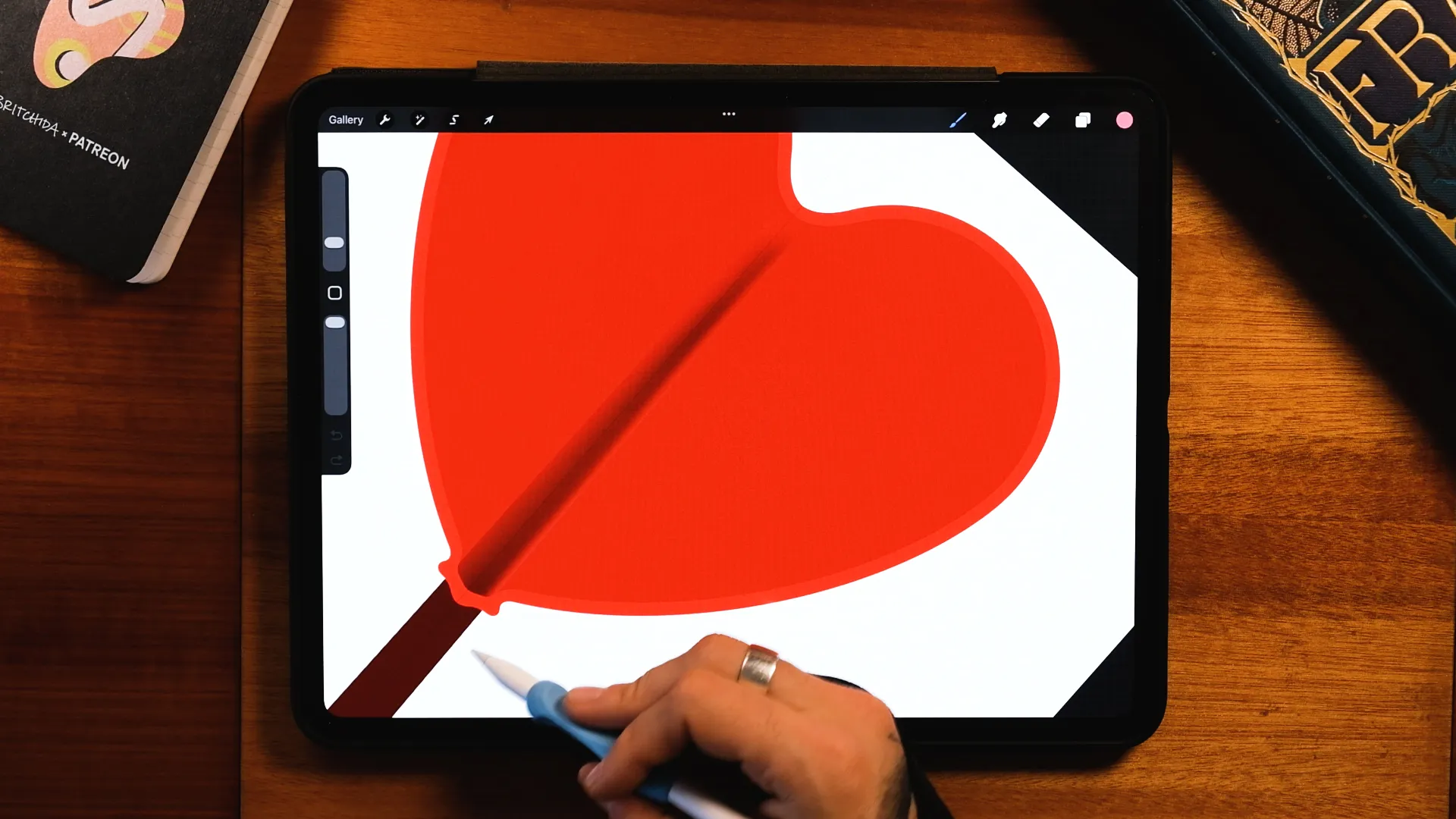 In this Procreate tutorial, I’ll show you step by step how to create a glossy, heart-shaped lollipop just in time for Valentine’s Day. You’ll learn how to build the base shape, add depth and grain, create realistic reflections, and achieve that candy-glass transparent effect.
